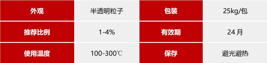 2、在聚乙烯体系增刚增强效率高,同时提高制品的耐热性和热变形温度;